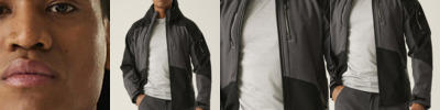 Standard fit. Full-zip front. Zipped chest and side pockets. Printable three-layer binded softshell fabric. Chinguard. Internal storm flap. Adjustable shock cord hem. Windproof and showerproof.
